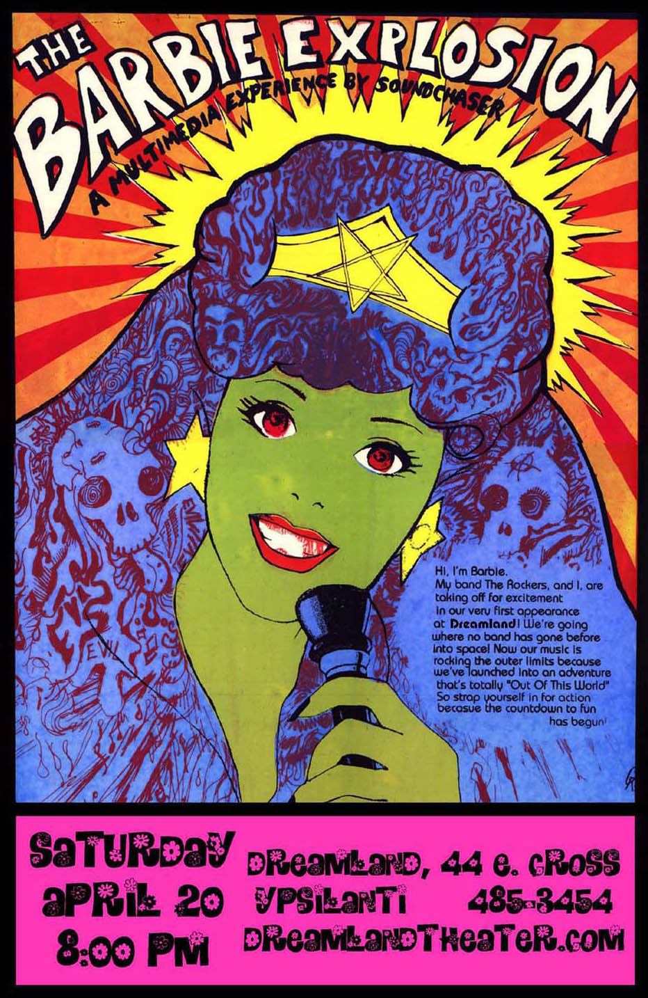 On January 1, 2002, Dreamland opened at 44 E, Cross St., Ypsilanti MI, and hosted its first show! The space had previously been part of a coffee shop that hosted an open mic night every Tuesday, so when people showed up for that we hosted it staring Dreamland first weekly event!